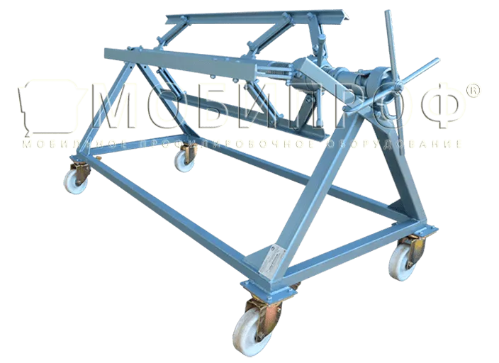 Свободное перемещение разматывателя обеспечивается наличием четырех колес с тормозным механизмом.