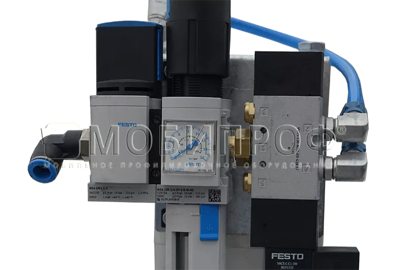 Линия для производства профиля для гипсокартона состоит из профилегибочного модуля, стационарной (стационарный рез) или летучей (летучий рез) пневматической гильотины для поперечной резки изделия после процесса профилирования, автоматической системы управления (АСУ). Опционально сенсорная панель оператора к АСУ значительно облегчает процесс ввода и контроля параметров, а также позволяет вносить в память станка до 10 различных программ производства (длина и количество профилей). Дополнительно на профильный станок можно установить устройство для нанесения насечек на профиль ПП 60х27, а также устройство пробивки отверстий на профиле ППН 28х27.